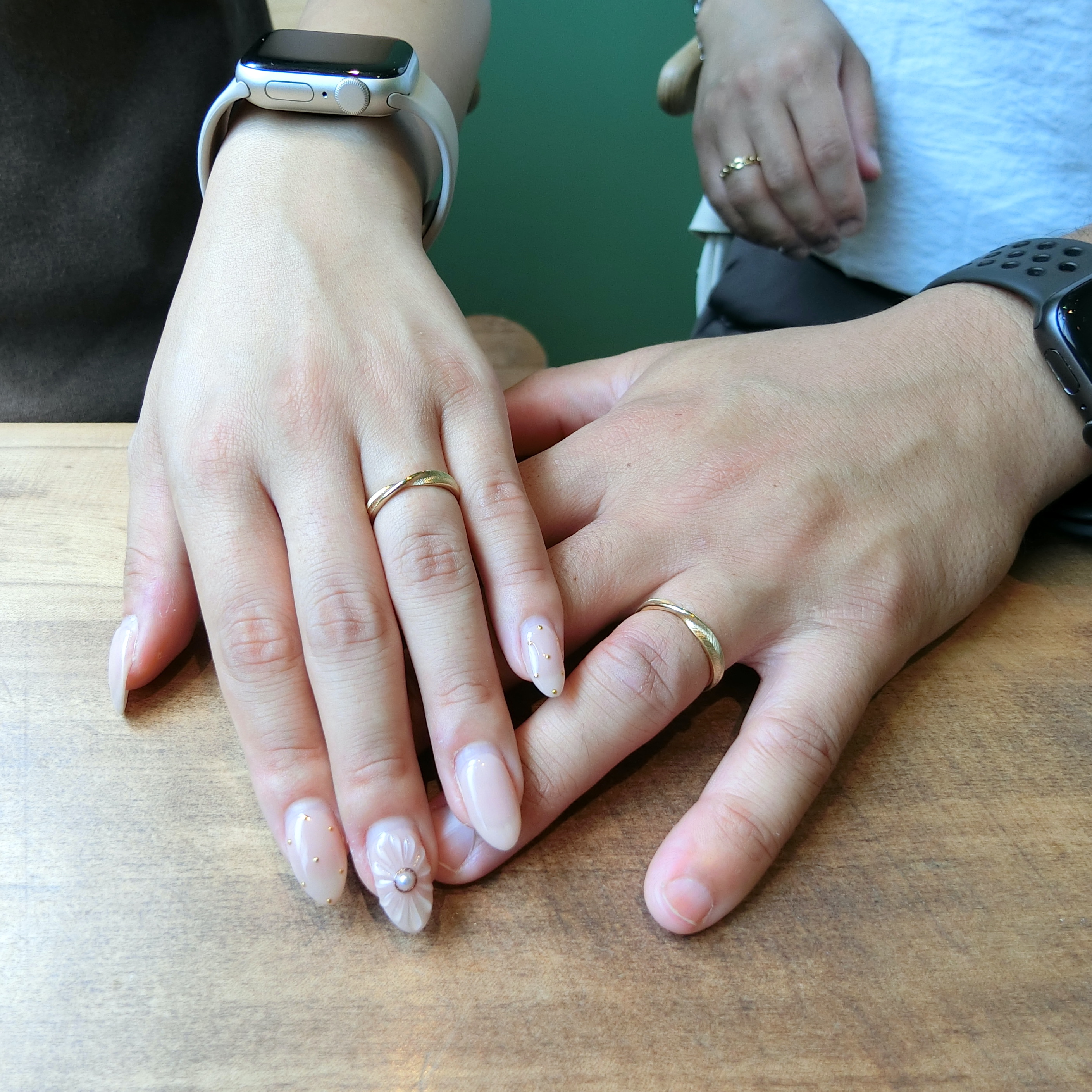 連手掌側也充滿兩人專屬設計的結婚戒指。