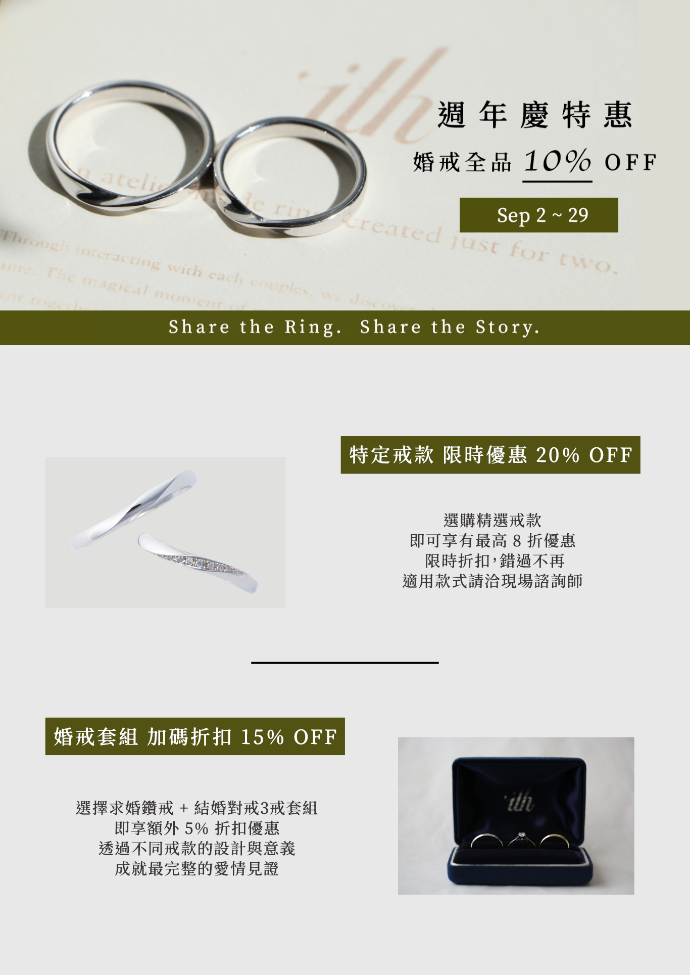 2025.09.01 News 《公告》週年慶特惠|Share the Ring. Share the Story. TAGS: News通知 *限時優惠自 9/19 起開始實施 TAGS: News通知 上一篇文章 下一篇文章 查看News的相關文章 更多文章