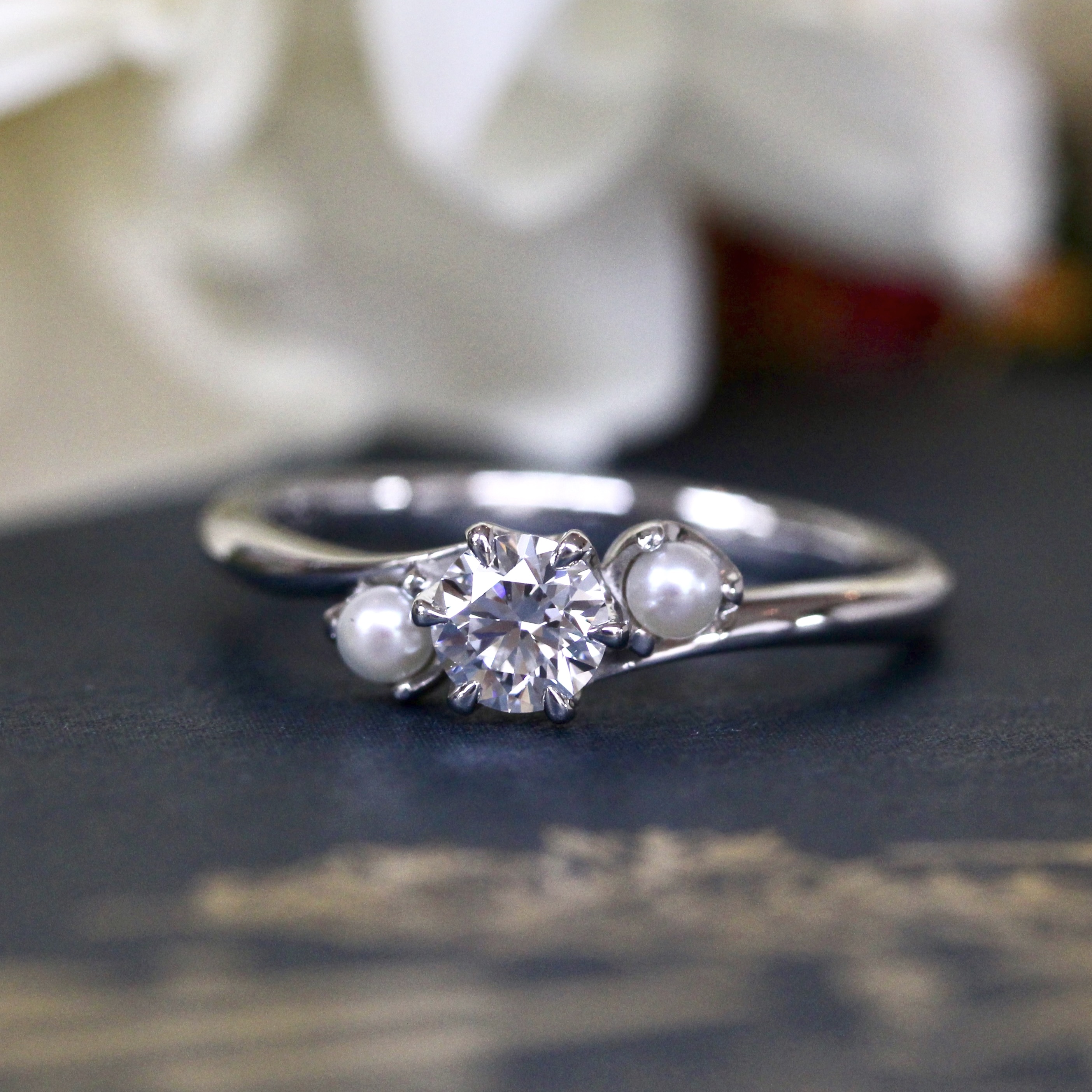 我們也曾打造出一枚鑲嵌珍珠的求婚戒指。