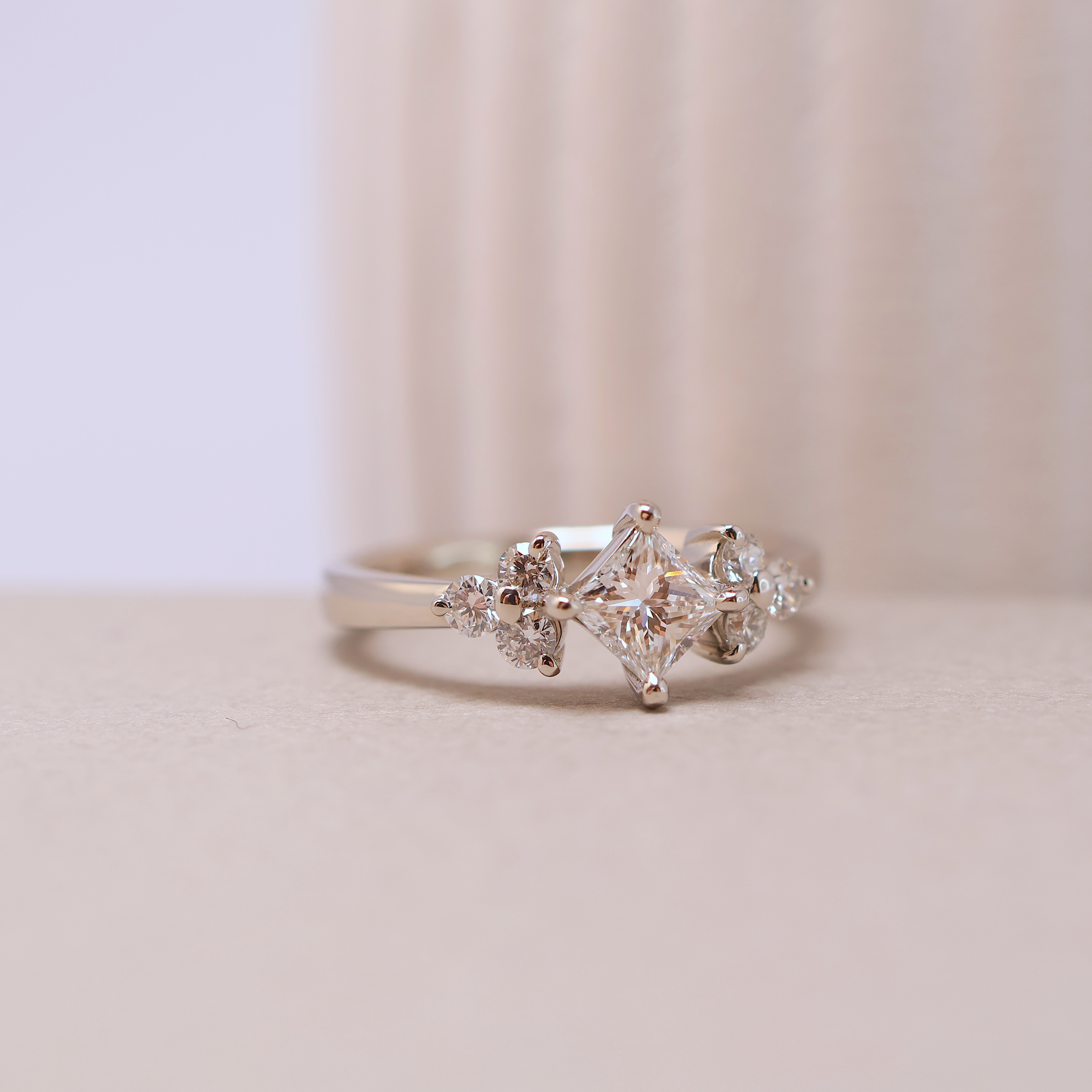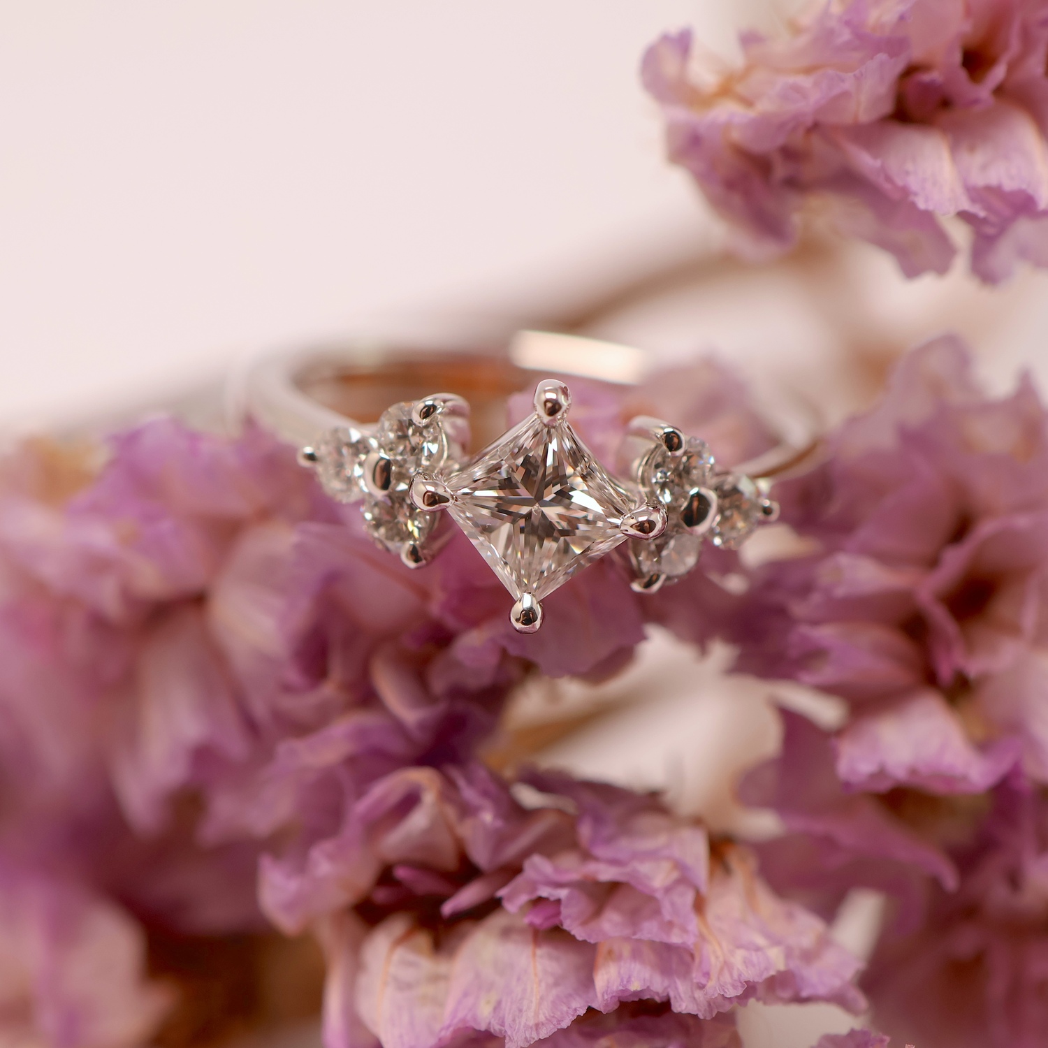 那份線條的流暢、側鑽的恰到好處、以及主鑽公主方車工的低調優雅,讓Clover在所有選擇中,始終無可取代。