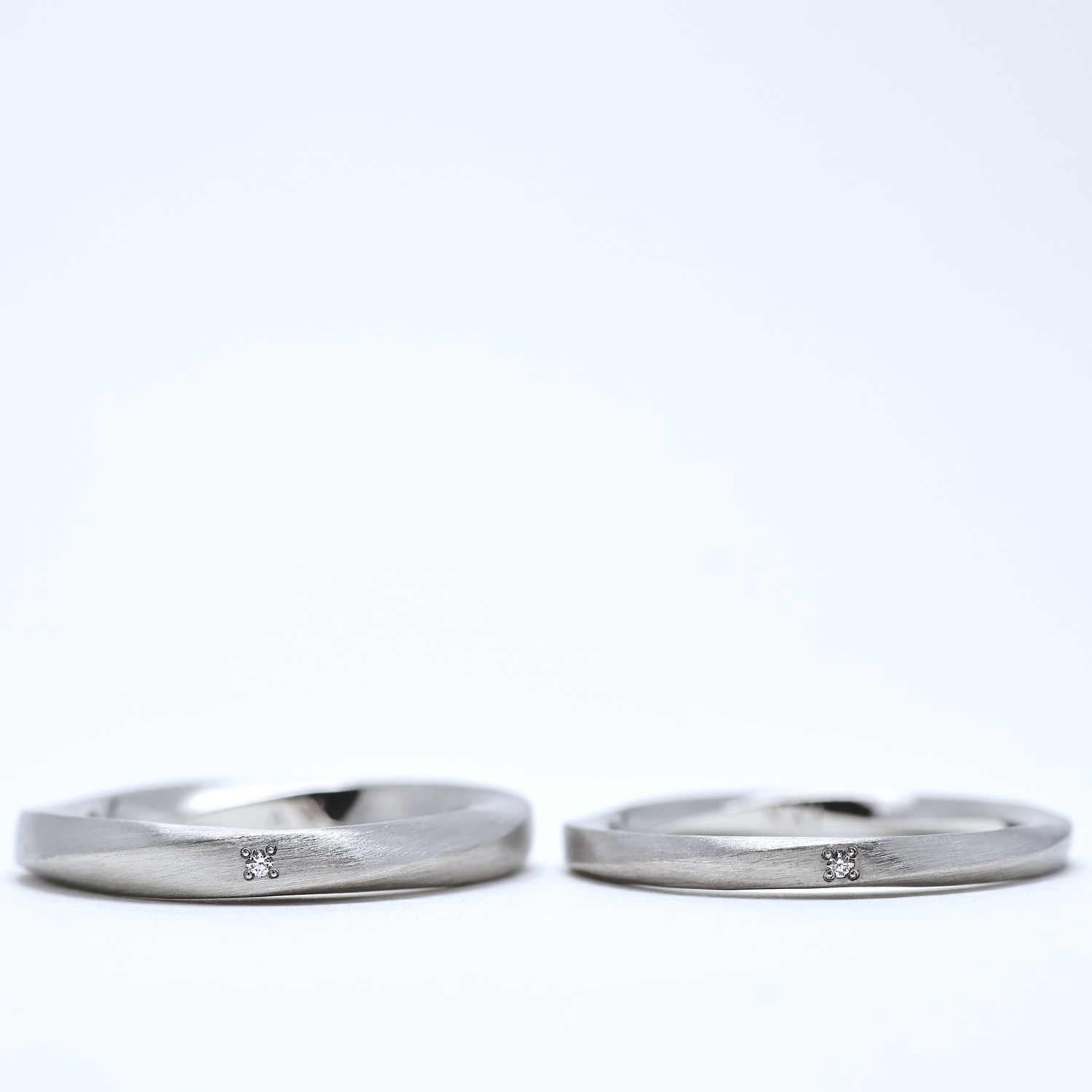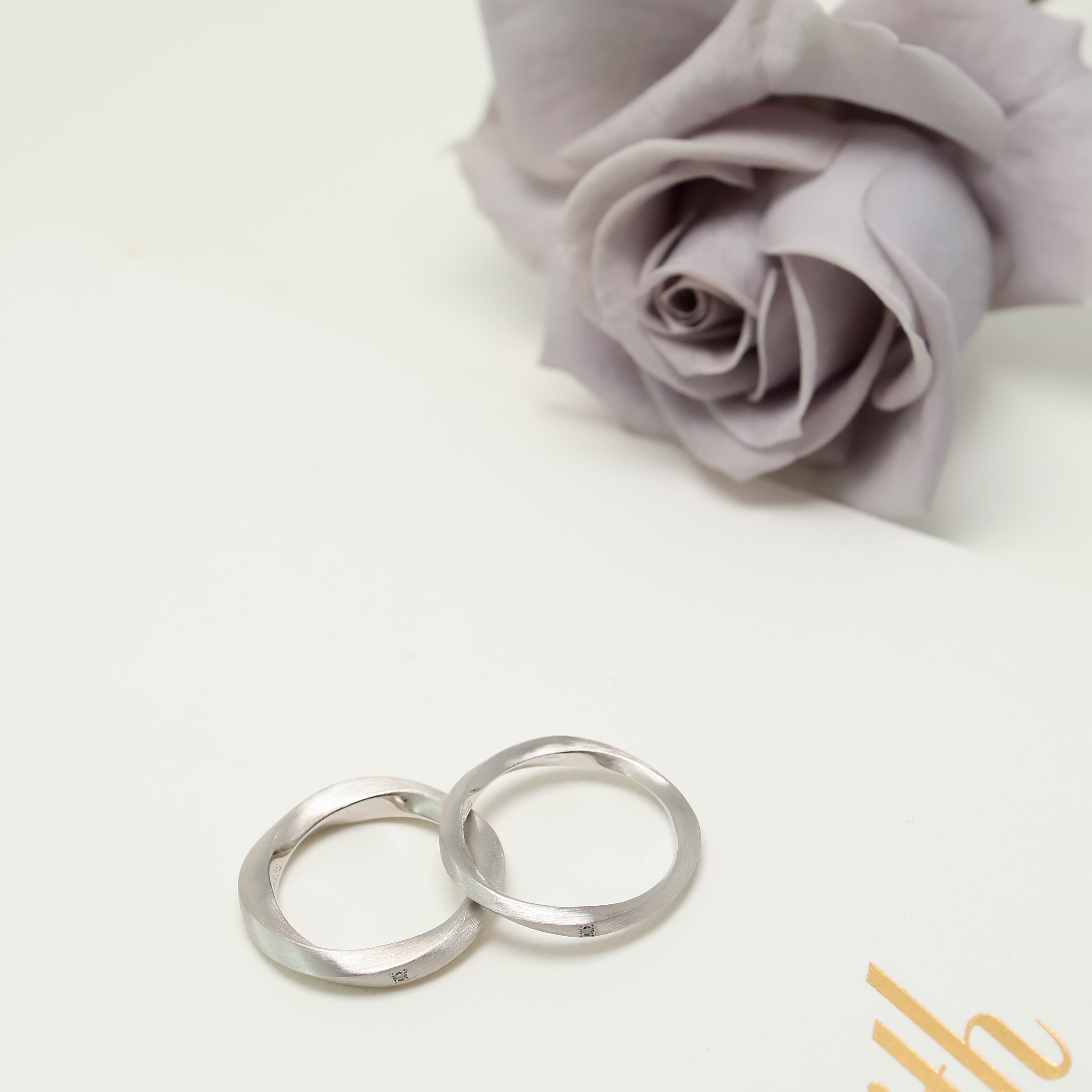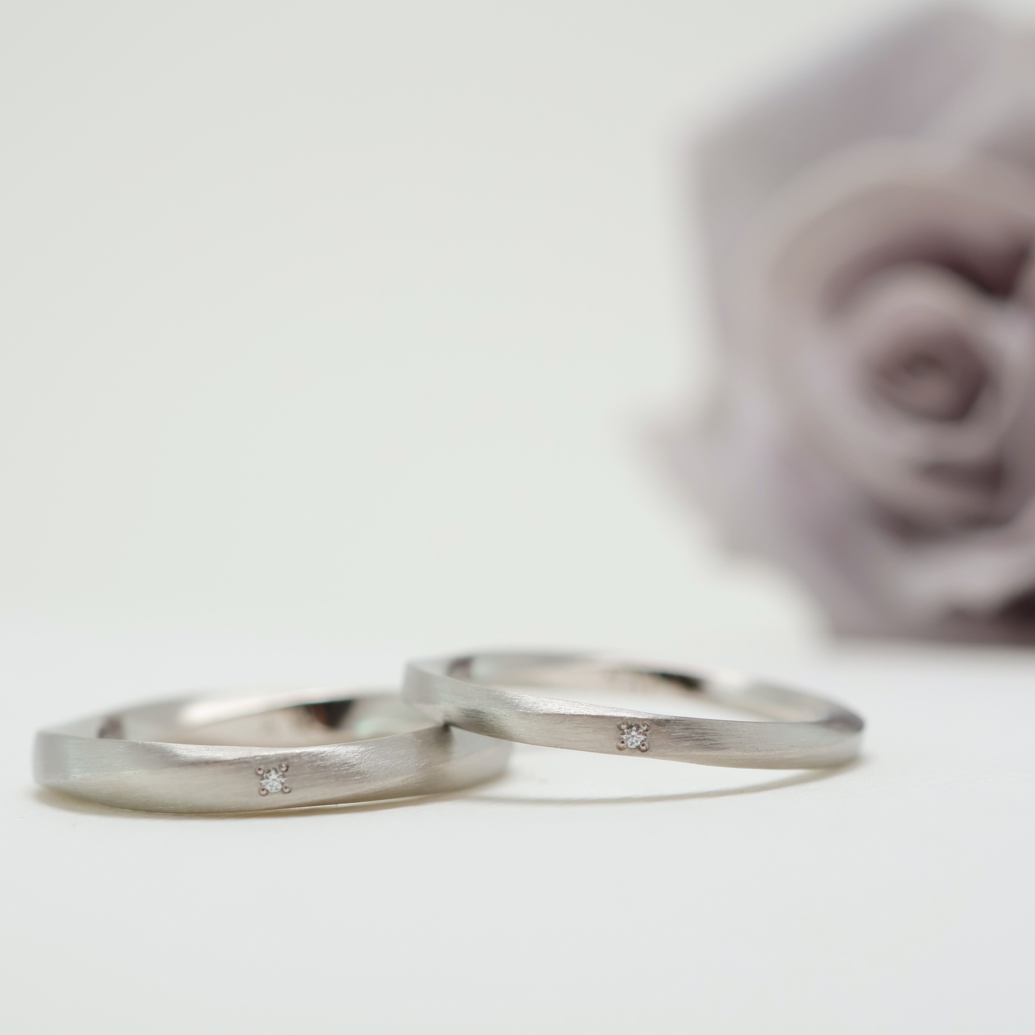 作為結婚對戒,她們選擇以鉑金製作,在表面鑲上一顆小小的鑽石,