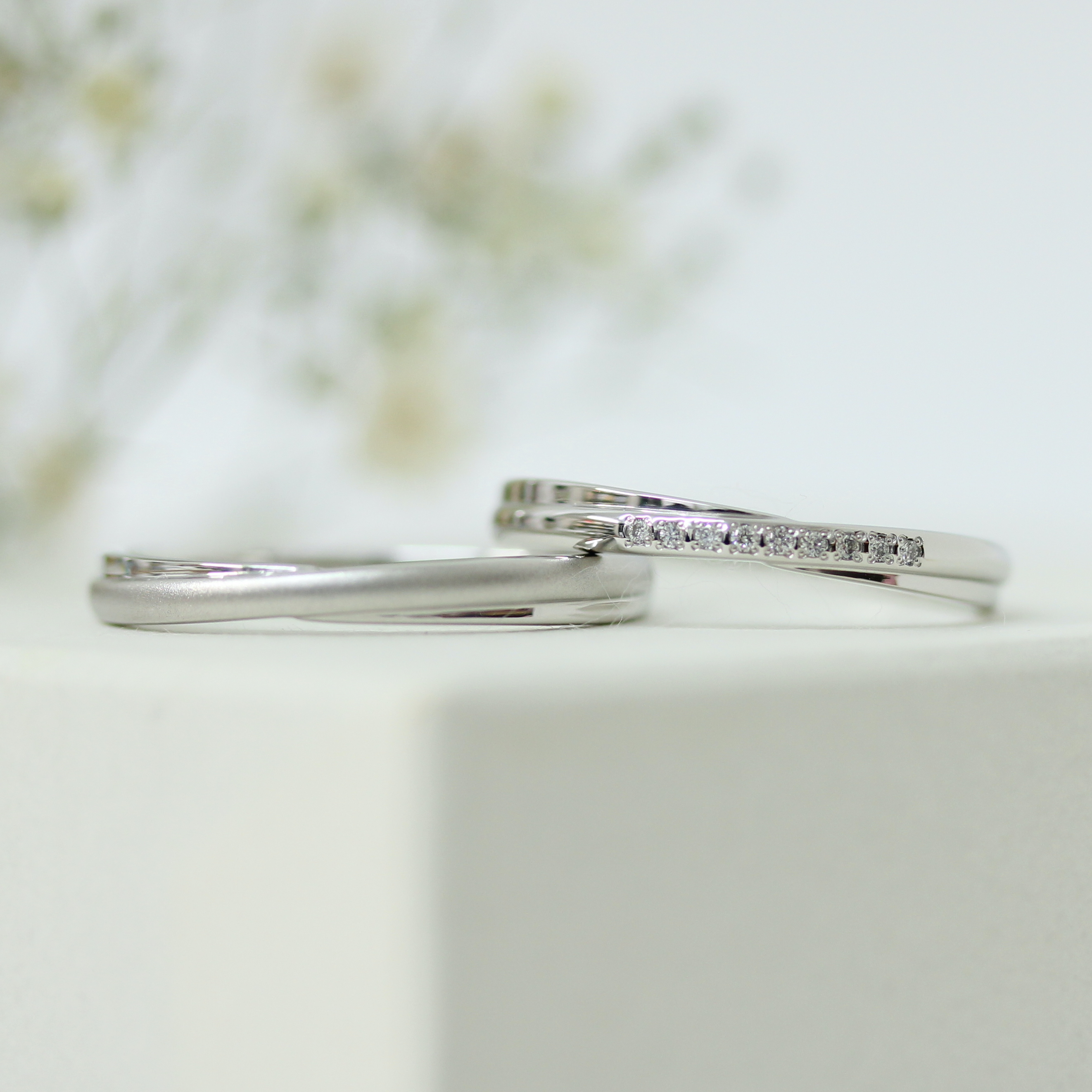 此戒指以中央交叉的兩道線條,象徵在「結婚」這個重大里程碑中交疊的你們的人生。