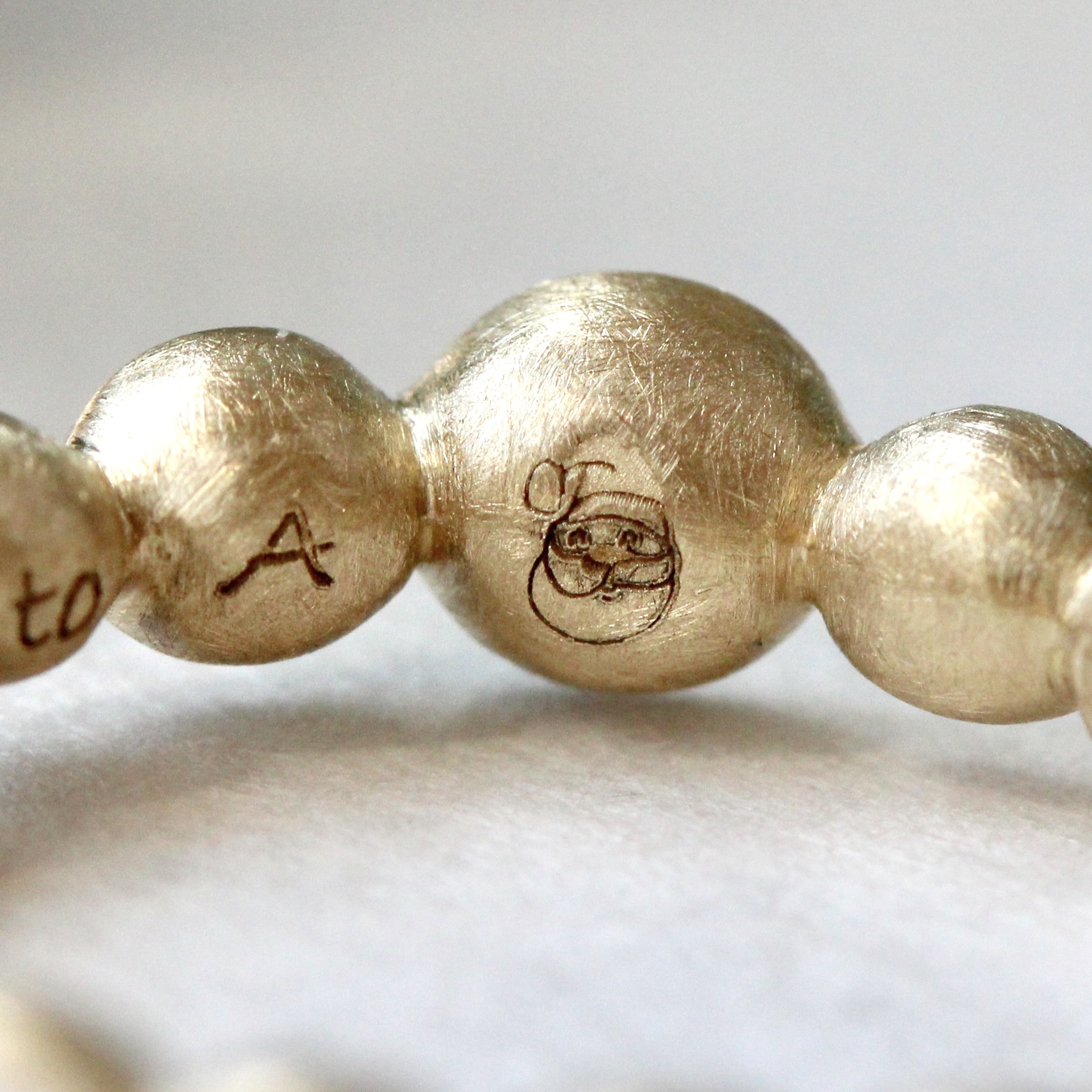 戒指內側刻劃著男生在禮物券上畫的帶著微笑聖誕老人插畫。