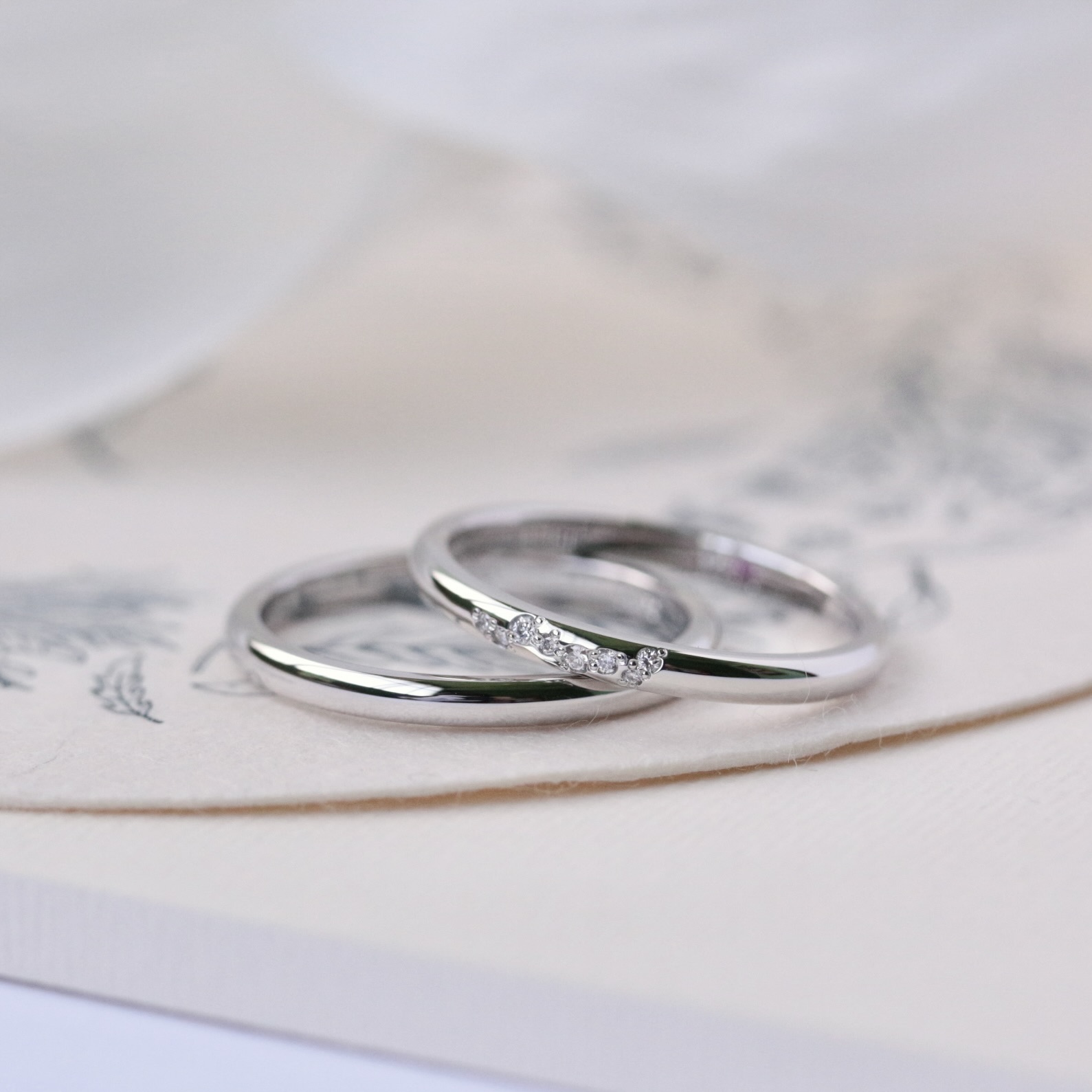 以較細的戒寬為基礎,能讓配戴時的重量感更加輕盈。