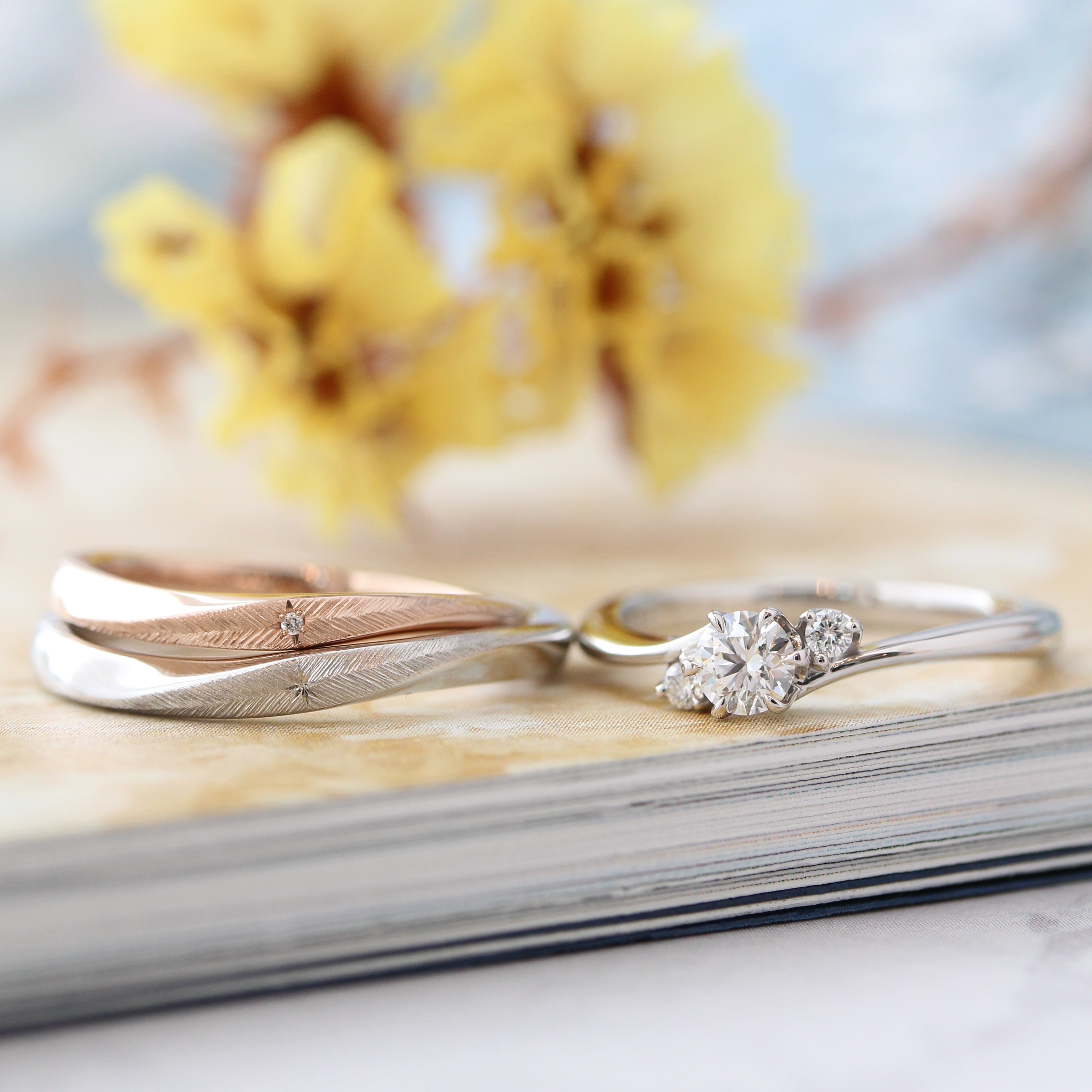 彷彿羽毛輕舞般、弧線優美的結婚戒指