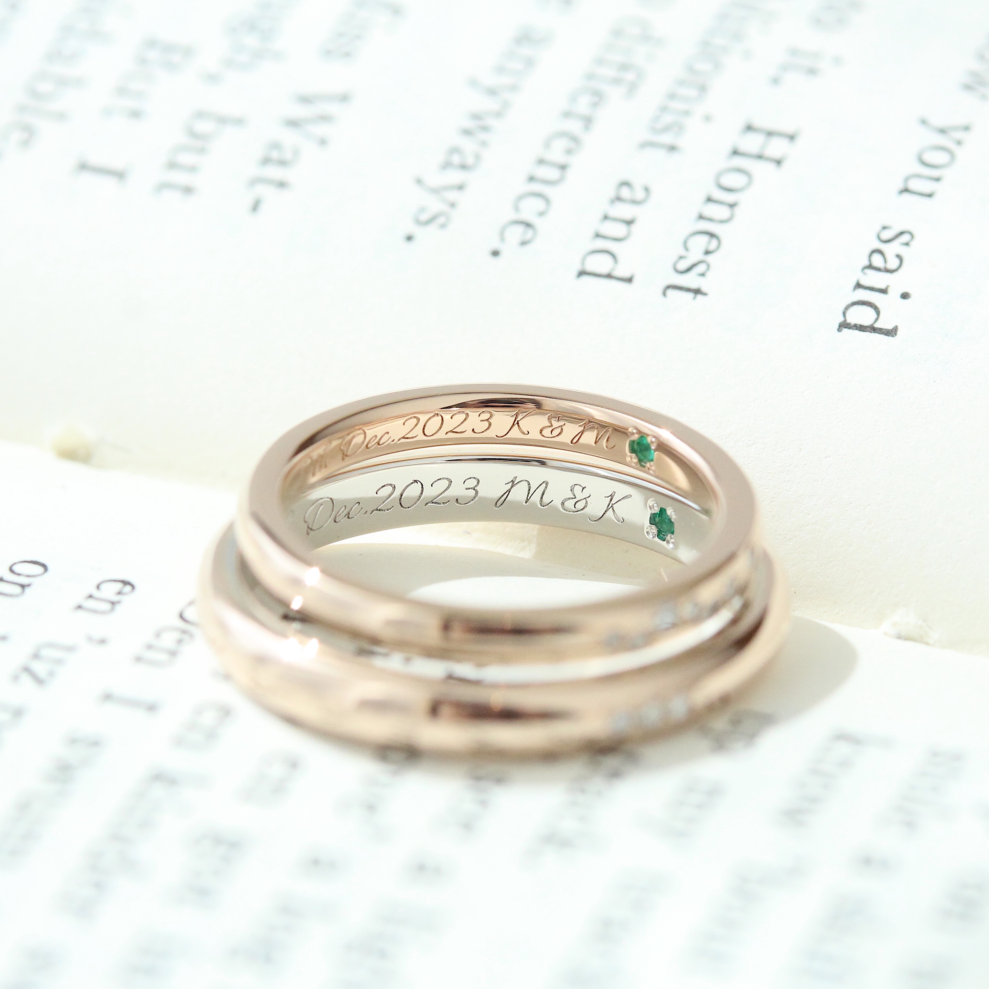 在兩位戒指的內側鑲嵌了祖母綠。