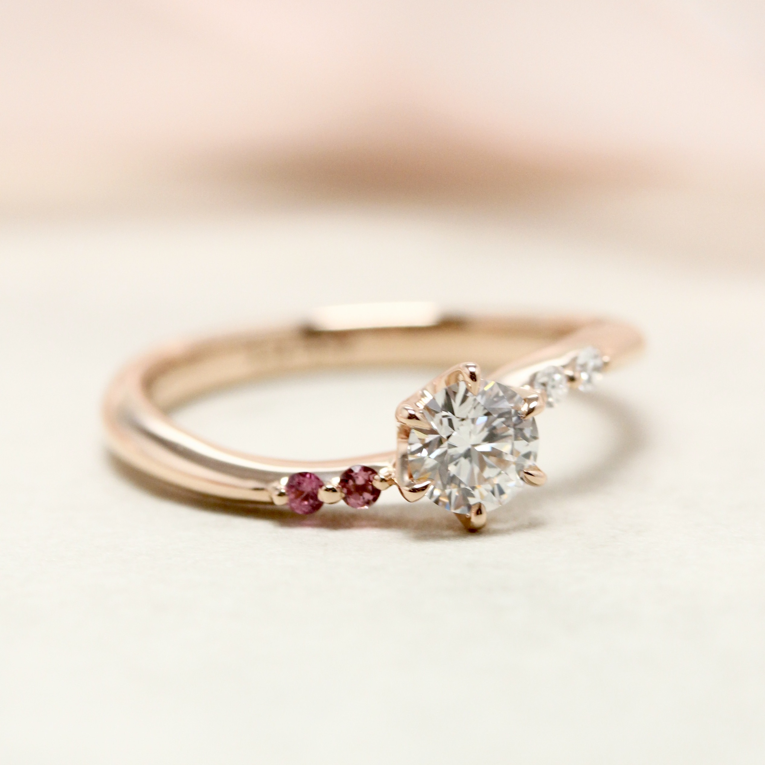 決定以小顆的粉紅寶石點綴,
