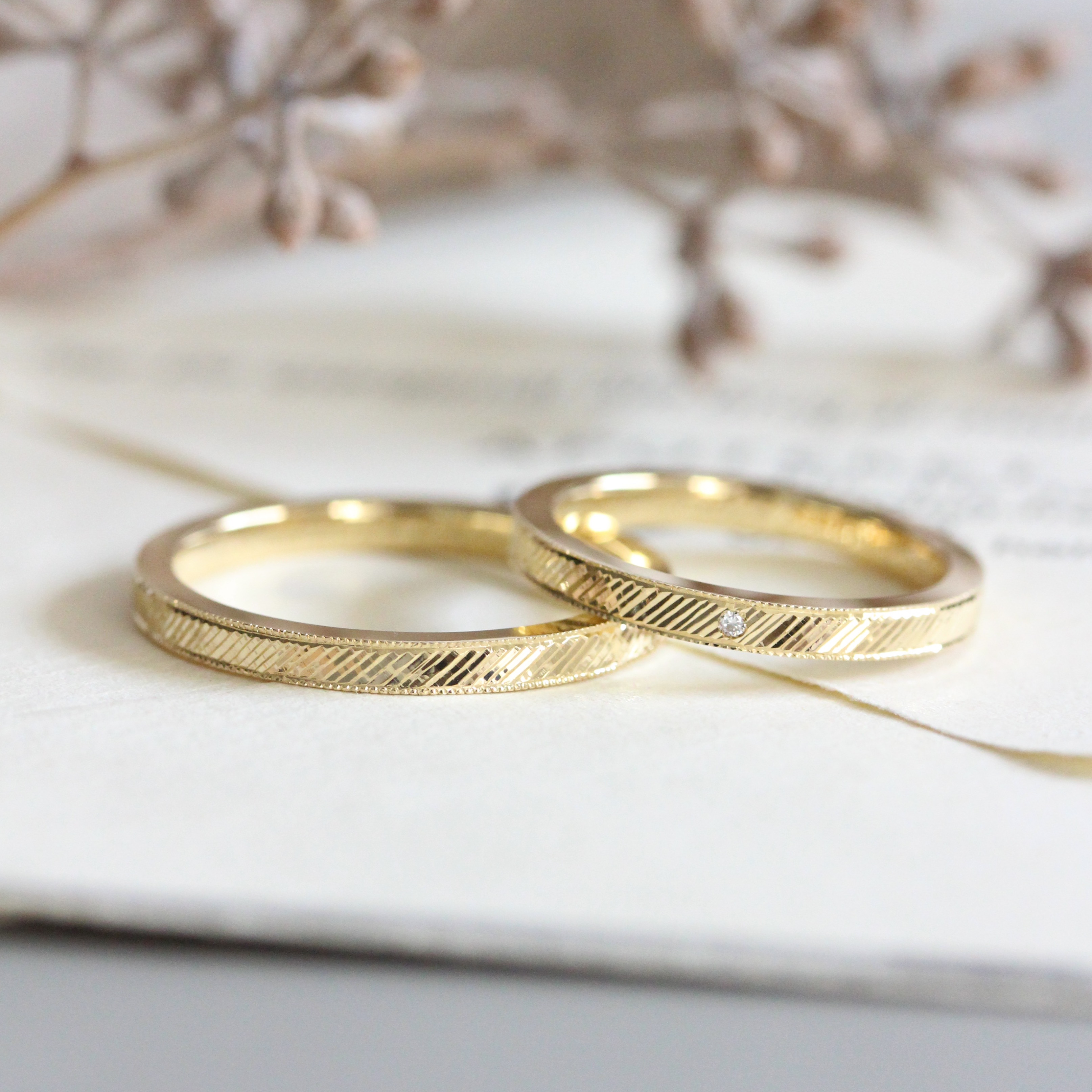 最終誕生的,竟是一對色調與設計都相互呼應的結婚戒指。